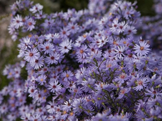 Астра сердцелистная "Little Carlow" – изящный, поздноцветущий и воздушный корневищный многолетник, особо ценимый за свою ажурную, разветвлённую форму и облако мелких, нежных сиренево-голубых соцветий. Этот сорт образует живописные, многостебельные кусты с характерной сердцевидной листвой, которые осенью покрываются мириадами звёздчатых цветков. Благодаря лёгкой, раскидистой структуре, обильному цветению холодного оттенка и хорошей устойчивости, сорт идеально подходит для создания фона в природных садах и миксбордерах, посадки среди декоративных злаков, в среднем ярусе цветников и для лёгкой, воздушной срезки.Форма куста – рыхлая, ветвистая, ажурная, с многочисленными тонкими, прочными, сильно разветвлёнными стеблями, образующими широкий, обратнопирамидальный куст. Листва сердцевидная (особенно в нижней части), грубоватая, насыщенно-зелёная, на длинных черешках. Высота взрослого растения обычно составляет 80-100 см, ширина – 50-60 см. Куст может требовать легкой опоры или посадки среди других устойчивых растений. Главная особенность – невероятно обильное, позднее и очень воздушное цветение. С середины сентября до конца октября на всех многочисленных боковых веточках раскрываются крошечные (диаметром 1-1,5 см), но бесчисленные соцветия-корзинки. Язычковые цветки – нежного сиренево-голубого, лавандово-голубого оттенка, а центр из трубчатых цветков сначала желтоватый, затем становится розовато-коричневым. Мелкие соцветия собраны в крупные, рыхлые, метельчатые соцветия, которые в совокупности создают эффект цветного тумана или дымки вокруг куста. Цветение обильное и продолжительное.