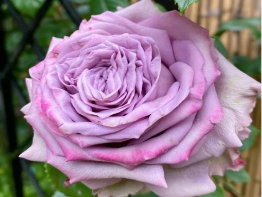 Розы окрашены в темно-лиловый, а кончики окрашены в легкий зеленый цвет Чашевидные цветки имеют размер в диаметре до 12 см. Сорт махровый