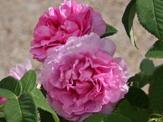 Роза имеет крупные цветки с количеством лепестков достигающих до 35. Лепестки бледно-розовые с темно-вишневыми прожилками. Бледно-розовые края.