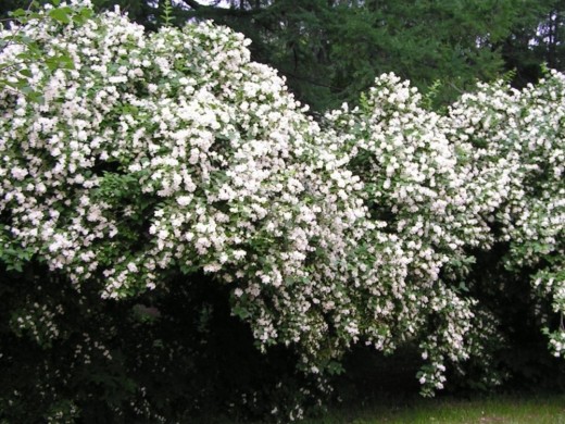 Цветение в июне, до 3 недель. Цветки белые, душистые, махровые около 2,5см, собранны в рыхлые, слегка пониклые кисти по 7-15 штук.