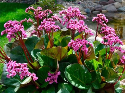 Бадан сердцелистный – многолетнее травянистое растение, которое состоит из больших глянцевых листьев и розовых цветов на высоких малиновых ножках. Максимальная высота взрослого растения может достигать 50 см. Кожистая и глянцевая листовая пластина окрашена в темно-зеленый цвет и расположена на длинных черешках, которые собраны в одной прикорневой розетке. Мелкие цветы, напоминающие колокольчики, собраны в метельчатые соцветия и расположены на верхушке стебля. Период цветения – весна. После увядания соцветий происходит формирование семенных коробок, в которых находятся удлиненные семена.