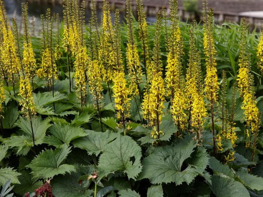 Бузульник узкоголовчатый "Little Rocket" компактный и декоративный многолетник с эффектными вертикальными соцветиями, который станет ярким акцентом в полутенистых и влажных уголках сада, идеально подходя для оформления миксбордеров, бордюров у водоёмов, приствольных кругов деревьев или групповых посадок. Этот карликовый гибрид ценится за крупные, зубчатые листья и яркие жёлтые колосовидные соцветия на тёмных стеблях, создающие эффект "маленькой ракеты" и добавляющие саду вертикальности и цвета в середине лета.