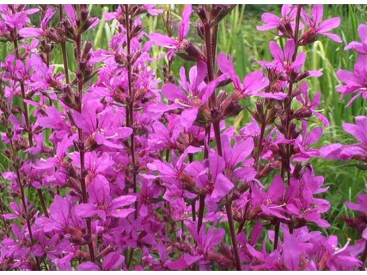 Дербенник прутовидный «Dropmore Purple» статный, очень выносливый и травянистый многолетник с продолжительным ярким цветением, который станет выразительным вертикальным акцентом в саду, идеально подходя для оформления берегов водоемов, влажных миксбордеров, цветников в природном стиле или создания эффектных групповых посадок. Этот популярный сорт выделяется многочисленными пурпурно-розовыми или лилово-пурпурными цветками, собранными в плотные колосовидные соцветия, создающими эффект «сиреневого факела» и добавляющими саду сочного, насыщенного цвета в середине лета.