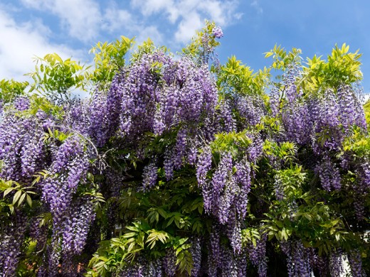 Глициния "Blue Wisteria" предпочитает полное солнце или легкую полутень, где цветение наиболее обильное, но может адаптироваться к полутени при регулярном поливе.