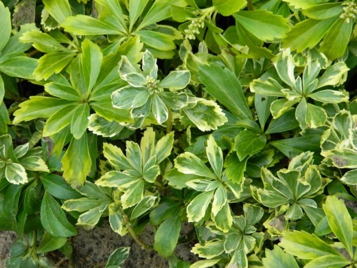 Пахизандра "Variegata" цветет в ранние сроки — с апреля по май, но главная ценность — в листве, обеспечивающей декоративность круглый год.
