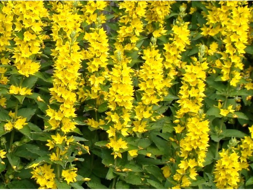 Многолетнее растение со слабоветвистыми, прямыми, слабо разветвленными, опушенными побегами, образующими плотные, высотой до 70–80 см куртины, которые могут образовать заросли. Мелкие звездчато-колокольчатые цветки диаметром около 2 см, с пятью золотисто-желтыми лепестками и оранжевым пятном в центре, собраны в пазушные пучки, образующие одно очень большое колосовидное соцветие длиной до 40 см\. Растение хорошо подходит для оформления прибрежной зоны больших и средних водоемов, особенно естественных, хорош на средних планах миксбордеров, для создания ярких пятен на газоне.