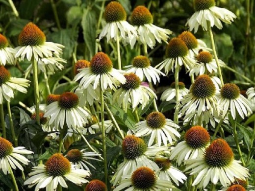 Эхинацея пурпурная "Alaska" Представляет собой травянистый многолетник. Эхинацею- используют для создания рабаток, миксбордеров, альпинариев и ярких клумб. Подойдёт для среза и создание букетов.Довольно плотный компактный куст, высотой до 60см. Стебли прочные прямостоячие. Цветки крупные с кремово-белыми лепестками и зелено-желтым выпуклым центром, диаметром 12-15см. Прекрасно смотрится в групповой посадке среди газона. Рано зацветает, обильно и продолжительно цветёт с июня по сентябрь.