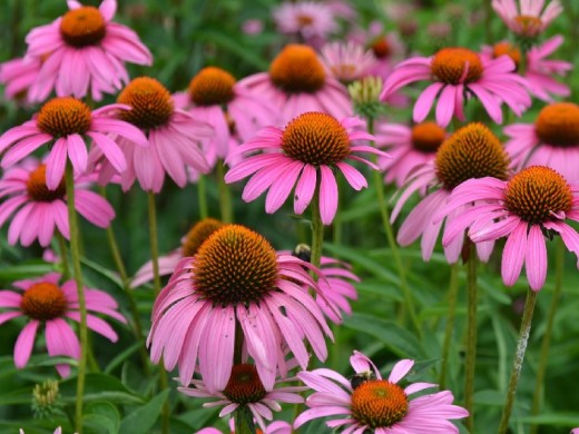 Эхинацея пурпурная "Rubinstern" Представляет собой травянистый многолетник. Эхинацею- используют для создания рабаток, миксбордеров, альпинариев и ярких акцентов в клумбах. Неприхотливое растение, подойдет для начинающих садоводов. Хорошо смотрится в посадке с многолетними растениями (шалфей, очиток, флокс, злаки) и многие другие. При посадки группами или среди газона.Этот многолетний цветок отличается своей яркостью, рубиново-розовыми лепестками с оранжевой серединой. Цветки крупные диаметром 12см. В высоту достигает до 90см. Что позволяет сделать акцент на отдалённые части участка. Цветёт такая эхинацея с июня по август, что не может не радовать.