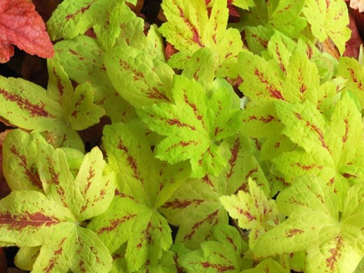 Гейхерелла "Sunrise Falls" сохраняет свою декоративность круглый год, особенно эффектно выглядя в подвесных композициях или как каскадное растение, где её листва создаёт яркий и тёплый акцент.
