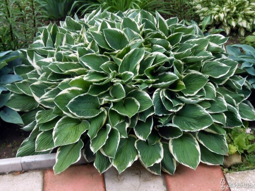 Высота куста около 50 см, диаметр до 90 см. Листья сердцевидной формы тёмно-зелёные, с ярко выраженным жилкованием, морщинистые. Окаймление белоснежное с самого начала разворачивания листвы весной и до конца сезона. Цветки воронковидные, лавандового цвета. Цветонос высотой до 75 см. Быстро нарастает br> Срок посадки конец апреля, в места, где тень, полутень. Благоприятно для них утреннее солнце. Хосты высаживают в расстоянии в 70см друг от друга. Необходим постоянный полив и подкормка. Почва суглинистая, хорошо дренированная и влажная, кислотность может быть любой. Хосту очень легко размножить делением куста.