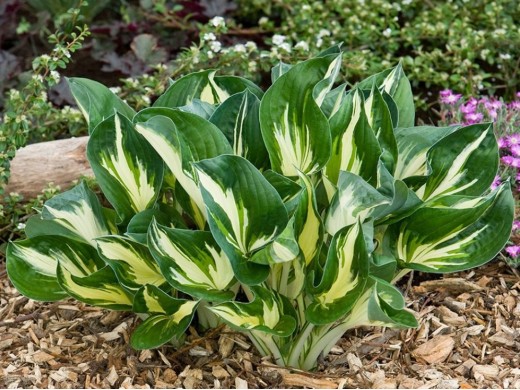Хоста гибридная "Sting" уникальная в своем роде, ее листва будто пропитана воском. Прекрасно справляется с декоративной функцией при обустройстве клуб, розариев и цветников.Хоста гибридная "Sting"- это быстрорастущая хоста. К середине лета формируется плотная розетка из тёмно-зелёных упругих листьев с салатовой и кремовой штриховкой по центру. Высотой 40см и шириной 45см. Листья, словно отлиты из воска, глянцевые, плотные, слегка волнистые, практически не повреждаются слизнями. Контрастная листва очень декоративна в течение всего сезона. Цветет в конце июля крупными соцветиями из лавандовых колокольчиков 6см, со слабым ароматом.