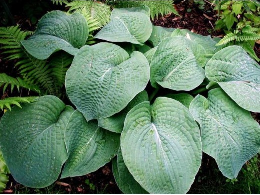 Хоста «Big Mama» даже при посадке в самые темные и отдаленные участки вашего сада она будет чувствовать себя королевой. Её, видно, издалека, так как она считается высокорослой.Очень большая хоста, разрастается вширь до 120-150 см. Высота листьев 75 см. Листья большие, 40х30 см, толстые, сердцевидные, морщинистые, вначале серо-голубые, летом постепенно становятся сине-зелёными. Интенсивность окраски зависит от места и освещения. Цветки бледно-лавандовые на цветоносах высотой 90 см. Цветение в июле.