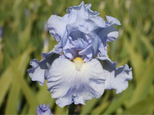 Относится к германским сортам. Цветок небесно-голубой,с желтой бородкой, сильногофрированный. Высота растения 90 см. Посадка проводится осенью в сентябре-октябре, весной в апреле-мае, а также летом, после цветения растения. При посадке, корневище слегка углубляется и мульчируется по поверхности. Цветение июнь-начало июля. Ирис предпочитает легкие, богатые питательными веществами почвы с нейтральной или слабокислой реакцией. Ирис любит солнце и безветренные, тихие места. Используется в мужских композициях и букетах, на альпийских горках и бордюрах. Сорт очень декоративен!