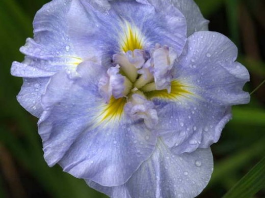Широко используется в ландшафтном дизайне для оформления берегов водоемов, создания цветочных композиций и одиночных посадок. Цветы японского ириса отлично смотрятся в букетах.Цветки большие, диаметром до 15 см, плоские, лавандово-бледно-голубые с белой каймой и жёлтым сигналом. Цветки в два раза крупнее, чем у традиционных сортов японских ирисов. Цветение в июле. Цветоносы прочные, прямостоячие. Высота растения достигает 60 см.