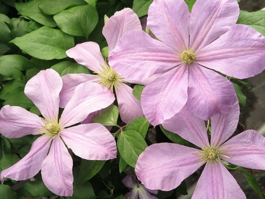 Высота растения достигает 3 м а в более теплых регионах и до 4м. Листья сложной формы, заостренные. Цветочки очень нежные и романтичные, благодаря нежно розово-фиолетовой окраски с рельефными прожилками, диаметр цветка около 7-10см. Цветение обильно с середины июля и до конца августа. Группа обрезки III (сильная).