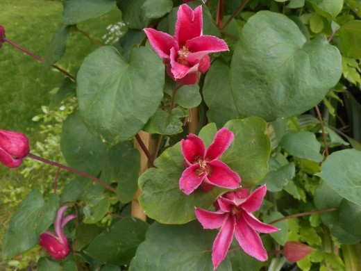 Сорта этой группы (Texensis) возникли в результате скрещивания и селекции Clematis texensis (клематис техасский) с крупноцветковыми сортами.Сорт с красно-розовыми цветами, напоминающими по форме тюльпаны с отогнутыми наружу лепестками.