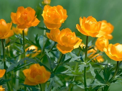 цветоносы высокие, с одиночными, развернутыми, яркими цветками на вершине; чашелистики широкоовальные, золотисто-желтые;