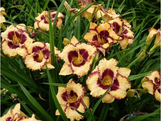 Лилейники идеальны для использования в различных ландшафтных композициях. Листья узкие, создают красивый фон для эффектных цветков. Прекрасно смотрится как в одиночных посадках, так и в групповых композициях, добавляя яркий акцент в любой сад.Гофрированный, кремово-бежевый цветок с насыщенным винным глазом и каймой, зеленым горлом. Высота взрослого растения 60см. Диаметр цветка 15см. Ароматный, обильно и повторно цветущий.