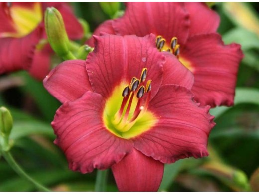 Травянистый корневищный многолетник. Повторноцветущий сорт. Цветок винно-красный, гофрированный с желто-зеленым горлом, ароматный. Мечевидно-изогнутые, зеленые листья образуют плотные кусты. Листва декоративна в течение всего периода вегетации. Посаженные культуры ежедневно поливают в течение 7 дней. Взрослые лилейники увлажнят только при длительных засухах, причем исключительно теплой водой, которую льют под корень. Лилейник один из самых малотребовательных многолетников. Использование: солитерные посадки среди газона, около водоема, групповые посадки с различными многолетниками. Эффектны лилейники различных сортов в одной группе, подобранные по высоте и срокам цветения, подходят для срезки.