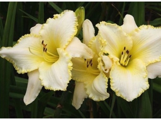 Отличный, практически белый сорт лилейника, с большим жёлто-зелёным горлом и гофрированными краями того же цвета. Высота лилейника 60 см, цветок диаметром 15 см. Без аромата и повторного цветения.