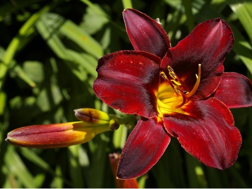 Кирпично-шоколадный цвет лепестков сгущается к центру, образуя чёрно-бордовый глазок. Края слегка гофрированы, имеют более красный оттенок по контуру. Горло насыщенного жёлтого цвета ярко контрастирует с основным. Цветок кажется бархатным на ощупь. При полном раскрытии бутона, лилейник Шоколадный Леденец в диаметре достигает 15 см. Непрерывное цветение с июня по август станет дополнительной наградой тому, кто всё же решит посадить этот удивительный цветок. В высоту лилейник сорта Chocolate Candy достигает средних размеров: 55-60 см.