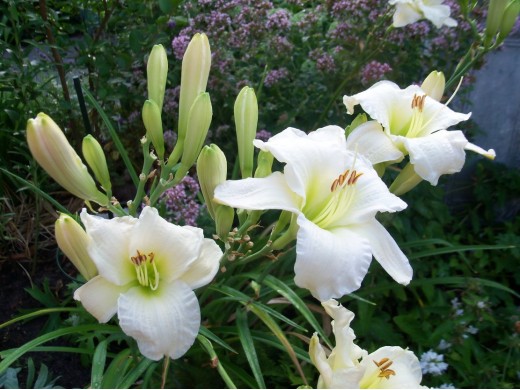 Мечевидно-изогнутые, зеленые листья образуют плотные кусты. Цветки нежно-белые с желто-зеленым горлом, лепестки слегка гофрированные, имеет продолжительное открытие бутона. Листва декоративна в течение всего периода вегетации. Вечнозеленый. Посаженные культуры ежедневно поливают в течение 7 дней. Взрослые лилейники увлажнят только при длительных засухах, причем исключительно теплой водой, которую льют под корень. Лилейник один из самых малотребовательных многолетников. Использование: солитерные посадки среди газона, около водоема, групповые посадки с различными многолетниками. Эффектны лилейники различных сортов в одной группе, подобранные по высоте и срокам цветения, подходят для срезки.