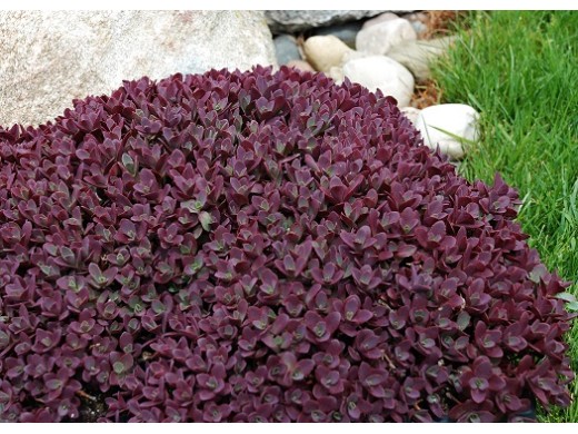 Этот сорт образует плотный низкий компактный ковер из интенсивно окрашенной листвы на вертикальном стебле. Листва округлая глянцевая изумрудно-рубиновых оттенков, на солнце приобретает интенсивную рубиновую окраску. Цветет обильно и продолжительно с июля по сентябрь. Цветы мелкие ярко розовые, появляются в большом количестве. Замечательно держит цвет все лето. Декоративны и листва, и цветы.