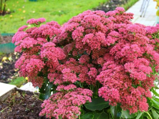 Отличный выбор для тех, кто ищет неприхотливый, декоративный и легкий в уходе суккулент. Он добавит ярких красок в любой сад. Хорошо растет в горшках и контейнерах. Используется для создания цветочных бордюров, альпийских горок и рокариев.Высота растения доходит до 60см, ширина 40-60см , образуя небольшой кустик. Цветки красного цвета, собранные в крупные соцветия достигающие 10см. Цветёт очиток с начало августа и до октября. Листики зелёные, гладкие, зубчатые.