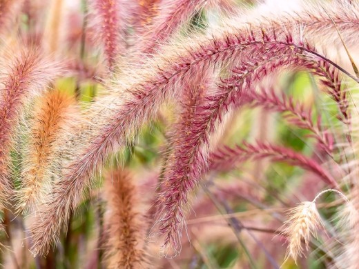 Пеннисетум восточный "Flamingo" цветет с июля по сентябрь, сохраняя привлекательность до поздней осени благодаря соцветиям и осенней окраске листвы.