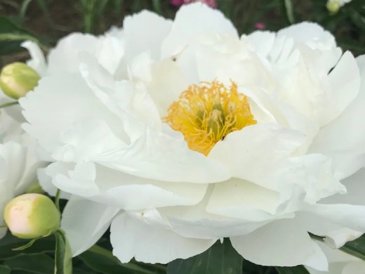 Пион молочноцветковый "Miss America" - сорт, дважды удостоенный золотой медали Американского общества любителей пионов за долгое и пышное цветение. Великолепно выглядит в составе крупных ландшафтных композиций и в одиночных посадках.Куст компактный, высотой 80 см, не требует подвязывания.