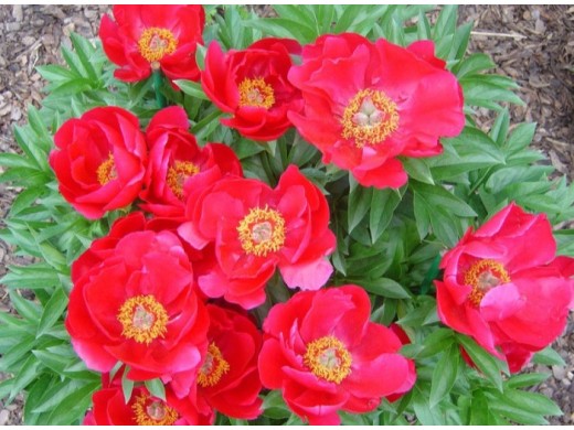 Пион молочноцветковый "Flame" - один из ярких, популярных сортов. Используется в создании клумб и цветников, рядом с местами отдыха - терраса, водоем. Подходит для срезки.Среднерослый компактный куст высотой 70 см, раннего срока цветения. Стебли не полегают.