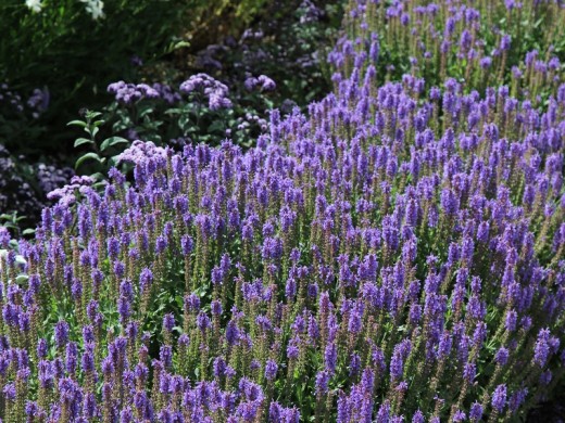 Шалфей дубравный "Blauhugel" неприхотливое многолетнее травянистое растение. Широко применяется в озеленении. Шалфеем создают яркие пятна на газоне вместе с растениями контрастных окрасок. Хорошо выглядит шалфей и в чистых посадках. Идеально подходит для горшков, бордюров, сада и привлечение пчел для опыления вашего огорода.Шалфей дубравный относится к семейству Яснотковые. Куст плотный. Не разваливается. Высота во время цветения 50см. Соцветия многочисленные, колосовидные, цветки мелкие, сиренево-синие. Цветёт на протяжение всего лета, с июня по август. Для продления и повторного цветения рекомендуется удалить центральное соцветие, для стимуляции боковых побегов.