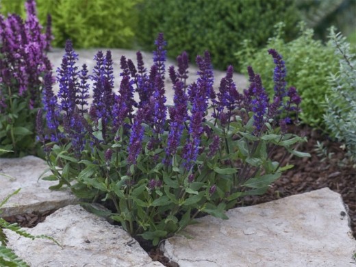 Шалфей дубравный "Blue Field" неприхотливое многолетнее травянистое растение. Широко применяется в озеленении. Используется для рокариев, альпийских горок, создания миксбордеров, рабаток, можно сажать в контейнеры.Компактный сорт шалфея дубравного высотой не более 20-25 см. Соцветия очень приятного оттенка сине-фиолетового цвета. Из-за прочных, не высоких цветоносов куст сохраняет свою опрятную форму в течении всего времени вегетации и подойдет для выращивание в кашпо. Стебли прямостоячие, разветвлённые. Листья продолговатые, густые. Цветёт на протяжение всего лета, с июня по август. После обрезки цветёт повторно август-сентябрь.