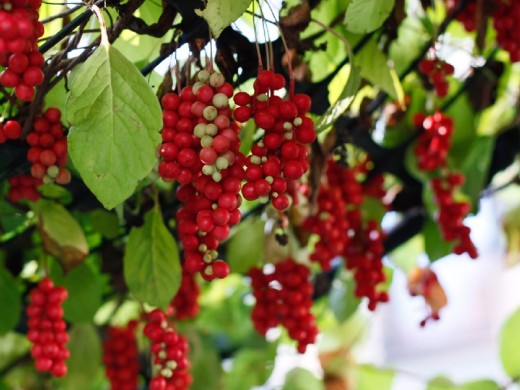 Лимонник китайский - эту листопадную лиану можно использовать для вертикального озеленения арок, беседок и пергол. Но прежде всего ценятся ее плоды, обладающие целебными свойствами.Длина лианы может достигать 15 м. Листья плотные, эллиптической формы, с небольшими зубцами по краям. Летом и весной верхняя часть листовой пластины блестящая, светло-зелёного цвета. Снизу лист сизого оттенка, немного опушенный по жилкам. Осенью листва окрашивается в жёлто-оранжевые оттенки.