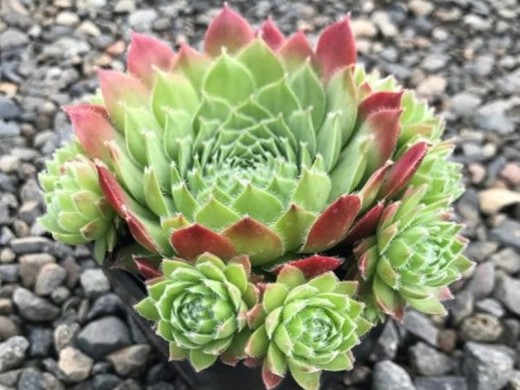 Молодило гибридное "Sirius" – компактный вечнозелёный суккулент с выразительными розетками, который станет отличным выбором для создания низкорослых акцентов в рокариях, альпийских горках, бордюрах или выращивания в контейнерах на балконах и террасах. Этот сорт выделяется яркой окраской листьев, сочетающей зелёный центр с красновато-бордовыми кончиками, создавая привлекательный контраст и текстуру в саду.Растение формирует плотную розетку диаметром 10-25 см и высотой 5–8 см, разрастается за счёт боковых отростков (деток), образуя ковровидные группы шириной до 30–40 см.