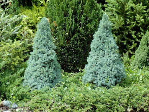 Ель канадская «Blue Wonder» - карликовая, хвойная форма, ценящаяся за свою идеальную коническую форму и красивую серебристо-голубую окраску хвои. Благодаря миниатюрным размерам, строгому силуэту и холодному оттенку хвои она стала излюбленным акцентным растением для небольших садов, альпинариев, вересковых композиций и контейнерного озеленения.Форма кроны очень плотная, густая, симметричная, узкоконическая или пирамидальная, с четкими контурами. Растет медленно, годовой прирост составляет 3-5 см. Максимальные размеры во взрослом состоянии – около 1.2-1.5 м в высоту и до 0.8-1.0 м в диаметре. Хвоя игольчатая, короткая, тонкая, но достаточно жёсткая. Её главная особенность – стабильный серебристо-голубой или сизо-голубой цвет, который создаёт эффект «инея» и сохраняется в течение всего года. Шишки очень редкие, мелкие, светло-коричневые.