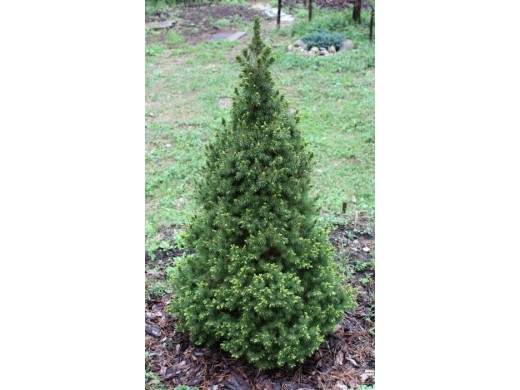 Ель канадская «Conica Speedy» – популярная, карликовая, хвойная форма, ценящаяся за свою идеальную коническую форму, плотную структуру и более быстрый рост по сравнению с классической «Conica». Благодаря аккуратному силуэту и компактности она стала излюбленным растением для небольших садов, альпинариев, вересковых композиций и для создания структурных акцентов.Форма кроны очень плотная, густая, симметричная, узкоконическая. Годовой прирост составляет 8-10 см. Максимальные размеры во взрослом состоянии – около 1.5-2 м в высоту и до 1 м в диаметре. Хвоя игольчатая, короткая, мягкая, не колючая, яркого светло-зелёного цвета. Молодые приросты могут иметь более салатовый оттенок, что добавляет растению объема и свежести. Шишки образуются крайне редко, мелкие, светло-коричневые.