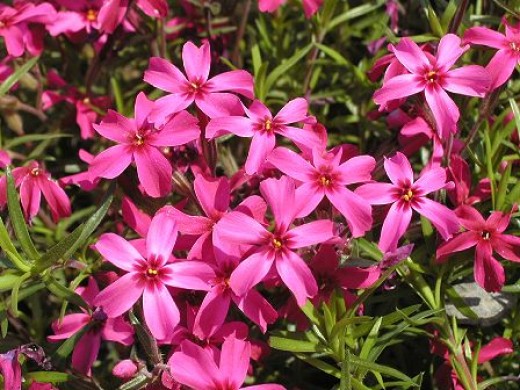 Флокс шиловидный "Scarlet Flame" Рекомендуется для посадки в альпинариях, теплых солнечных склонах, на каменистых террасах, в миксбордере, в качестве ярких красочных пятен на газоне.Название вида пошло от шиловидной формы листьев – узких и острых – до 2 см в длину. Быстро разрастающееся карликовое растение состоит из лежачих побегов. Высота куртины растения – 5-8 см, в цвету – до 15 см. Ширина 20-30см. Стебли с короткими междоузлиями густо покрыты зеленой листвой с жесткой поверхностью..