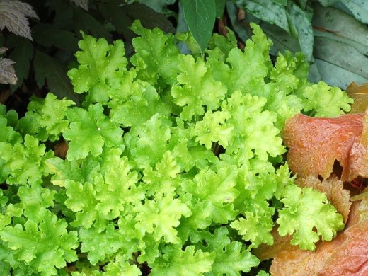 Оригинальные листики всевозможных оттенков полностью оправдывают свое название. Гейхера Мармелад, как хамелеон, периодически меняет цвет листьев, яркие, насыщенные оттенки сменяются глубокими темными тонами. В июне на высоких цветоносах появляются маленькие, белые цветочки. Почвы предпочитает легкие без застоя воды, на сырых участках мясистые корневища могут загнить. Поливать нужно под куст, осторожно, чтобы брызги не попадали на листья, которые от этого могут покрыться пятнами ожогов. Для лучшего роста и развития растениям требуется подкормка удобрениями. На зиму основание розетки лучше замульчировать. Молодые растения перед зимовкой хорошо прикрыть листвой или агроволокном.