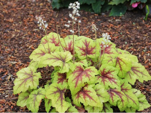 Компактный травянистый куст. Листья крупные, кожистые, плотные с рубиново-красными широкими наплывами вдоль жилок, меняющие свой оттенок в течение сезона. Весной золотистые, летом светло-зелёные. Цветки пушистые белого цвета на высоких цветоносах, собраны в метельчатые созвездия. Для более яркой окраски листьев высаживать гейхереллу Стоплайт рекомендуется на хорошо освещенном месте. Использование: миксбордеры, композиции, рокарии, бордюры.