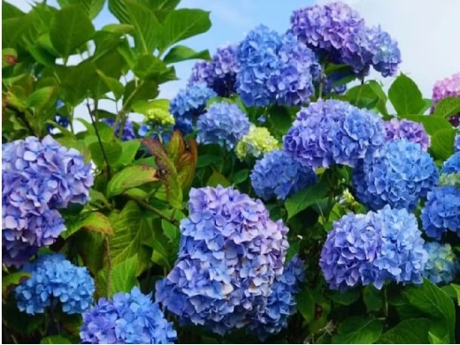 Цветёт очень обильно в июле-сентябре на побегах прошлого и текущего года. Цветки насыщенно-синие, собраны в крупные соцветия. При выращивании в нейтральной почве цветки будут фиолетовыми, в щелочной почве – розовыми.