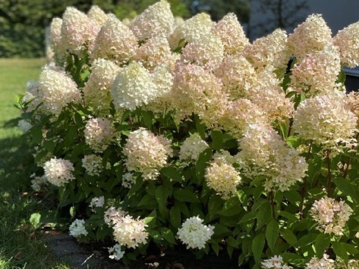 Соцветия крупные, широкопирамидальные. В начале цветения имеют светло-зеленый окрас, затем полностью становятся белыми, к концу вегетативного сезона розовеют. Цветение с конца июня до поздней осени.