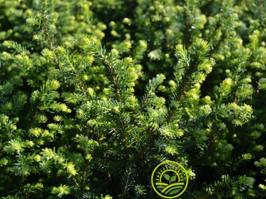 Хвоя короткая, темно-зеленая. Молодой прирост зачастую имеет более светлый цвет.