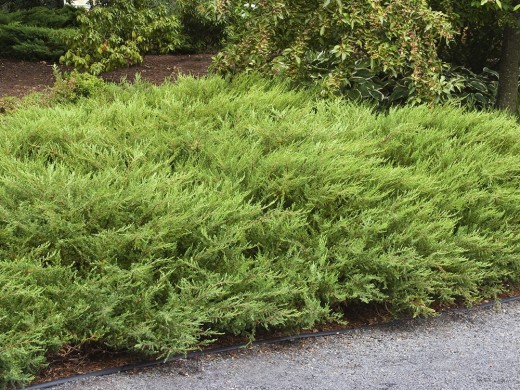 Можжевельник обыкновенный «Green Carpet» - популярный, карликовый, стелющийся хвойный кустарник, ценящийся за свою очень плотную, ковровую форму и яркую светло-зелёную окраску мягкой хвои. Благодаря способности быстро формировать густой, вечнозелёный покров он является одним из лучших почвопокровных растений для альпинариев, рокариев, укрепления склонов и декорирования передних планов ландшафтных композиций.Форма кроны очень плотная, густая, стелющаяся, подушковидная, с побегами, равномерно распространяющимися по поверхности почвы. Растет медленно, годовой прирост составляет 10-15 см в ширину и около 2-3 см в высоту. Максимальные размеры во взрослом состоянии - около 0.2-0.3 м в высоту и до 1.5-2.0 м в диаметре. Хвоя игольчатая, короткая, очень мягкая и не колючая, яркого светло-зелёного цвета, который сохраняется круглый год. Шишки мелкие, округлые, сизо-голубые, образуются редко.