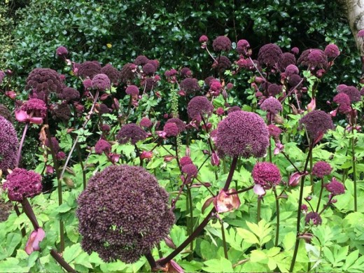 Дудник гигантский мощный и драматичный (монокарпический) травянистый многолетник, который станет настоящим архитектурным акцентом в саду, идеально подходя для оформления заднего плана миксбордеров, одиночных посадок у водоемов, природных садов или групповых композиций среди крупных растений. Этот корейский вид ценится за эффектные крупные бордово-пурпурные зонтики соцветий, контрастные темно-красные стебли и огромные перистые листья, создающие мощный, экзотический вид, особенно в конце лета – начале осени.Растение формирует крупный куст высотой 1,2–2 м и шириной 0,8–1,5 м. Стебли толстые, ребристые, пурпурно-бордовые или темно-красные, полые внутри, что придает дополнительную декоративность даже без листьев.