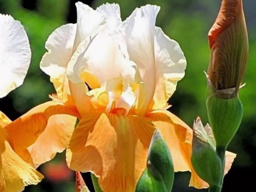 Крупные цветки, аккуратно собранные, нижние лепестки оранжевые, верхние белоснежные. Цветёт на протяжении всего июля Высота стеблей – до 75 см. Рассада Ириса Тыквенный Чизкейк (Pumpkin Cheesecake) лучше всего высаживать на солнечных участках или в полутени. Хорошо приживается посадочный материал на дренированных, умеренно влажных суглинкахХарактеристики: