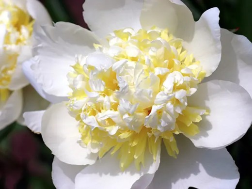 Пион молочноцветковый "Bridal Shower" элегантный и очень нежный травянистый многолетник с роскошным махровым цветением, который станет настоящим жемчужным украшением сада, идеально подходя для создания романтических акцентов в миксбордерах, групповых посадок, солитерных композиций или срезки в букеты. Этот сорт ценится за крупные, полностью махровые цветки чистого белого цвета с кремовым оттенком в центре.Растение формирует крепкий, компактный куст высотой 80–90 см и шириной около 70–90 см. Побеги прямые, прочные, хорошо ветвятся, надёжно удерживают тяжёлые цветки без подвязки.