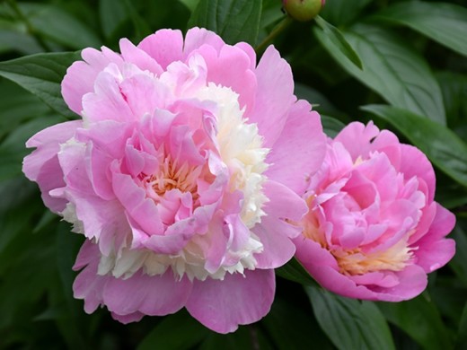 Пион молочноцветковый "Sorbet" эффектный и очень декоративный травянистый многолетник с махровым цветением, который станет настоящим десертным акцентом в саду, идеально подходя для оформления миксбордеров, бордюров, солитерных посадок или срезки в букеты. Этот сорт выделяется уникальной слоистой окраской цветков, напоминающей мороженое: внешние лепестки нежно-розовые, внутренние – кремово-белые, создавая лёгкий, воздушный и очень привлекательный контраст.Растение формирует крепкий, компактный куст высотой 70–80 см и шириной около 60–100 см. Побеги прямые, прочные, хорошо ветвятся, надёжно удерживают тяжёлые цветки без подвязки.