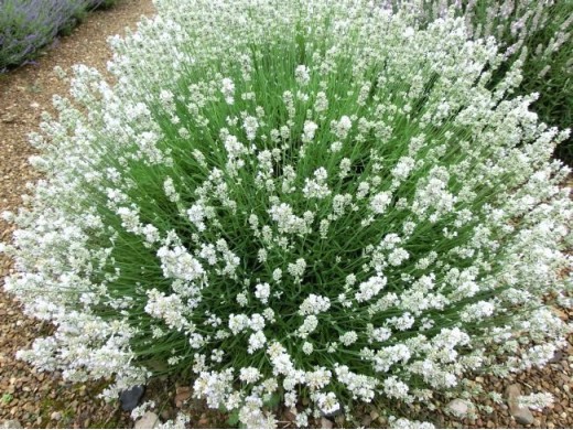 Используется в цветниках, бордюрах, альпинариях, рокариях, для создания ароматических садов. Подходит для выращивания в горшках и контейнерах на балконах и террасах. Цветы лаванды можно использовать для создания сухих букетов, саше и ароматических подушек. Эфирное масло лаванды обладает успокаивающими и расслабляющими свойствами.Многолетнее растение высотой 50см и шириной 40см. Листья серебристо-серые. Цветки чистого белого цвета, расположены в верхней части тонких прямостоячих побегов. Цветение июнь-август. Аромат насыщенный что характерно для лаванды.