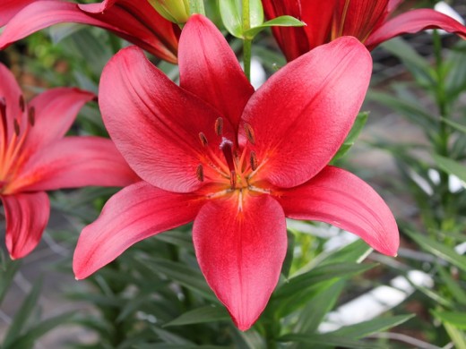 Лилии отличаются большим разнообразием сортов, форм и расцветок, что позволяет подобрать их для любого сада и на любой вкус. Они могут быть как низкорослыми, так и достигать внушительной высоты, а их цветки – от миниатюрных до огромных, поражающих своей красотой. Хорошо сочетается с другими многолетними растениями.Высота взрослого растения 110-120см. Цветки: направлены вверх, атласные, насыщенной тёмно-красной окраски с мягким оранжево-красным цветом в центре. Аромат лёгкий, утончённый.